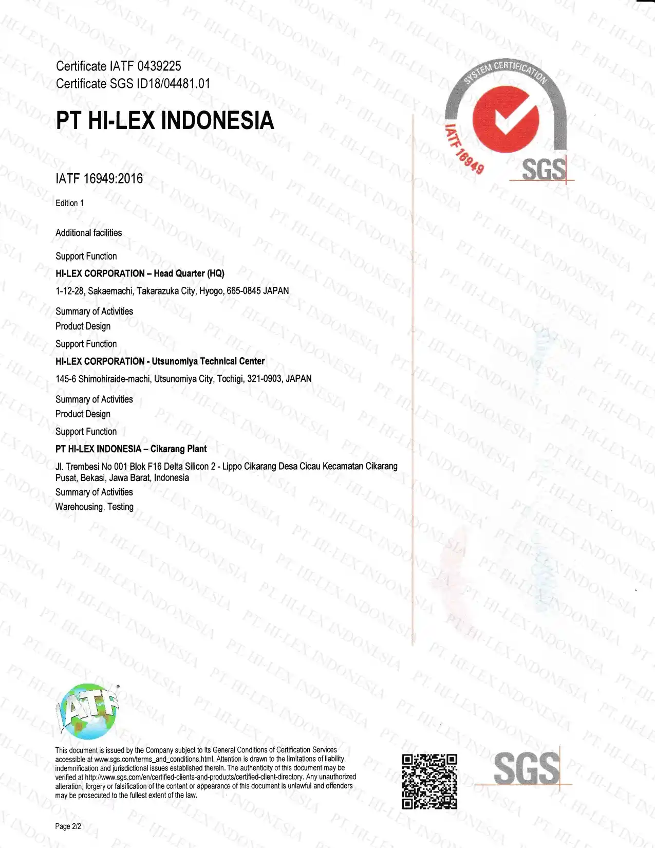 Company name changed to PT. HI-LEX Indonesia, 100% owned by HI-LEX Corporation Japan -